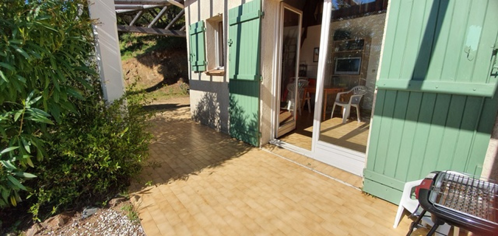 Dans un domaine privé avec piscines, tennis et aires de jeux joli mazet mitoyen d'un côté composé de: séjour avec cuisine américaine, chambre, salle de douche, WC séparé. A l'étage: une grande mezzanine offrant une 2e chambre. Beau jardin privatif, terrasse. VUE MER. CALME ET RESIDENTIEL. Me contacter au 06.86.01.93.21