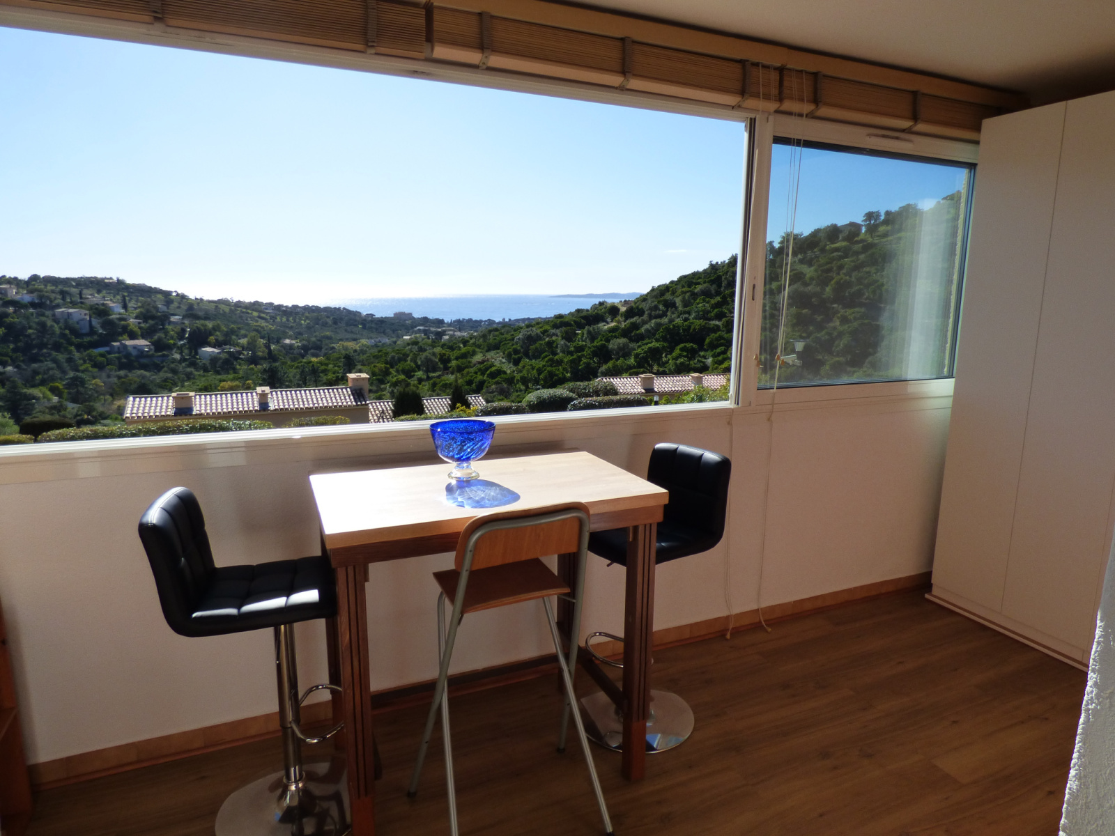 MAGNIFIQUE VUE MER, très bel appartement 2 pièces entièrement refait, offrant:: entrée, séjour avec cuisine US, une chambre, une douche italienne, très belles prestations, terrasse couverte et fermée. Dans domaine privé avec piscines et tennis.
