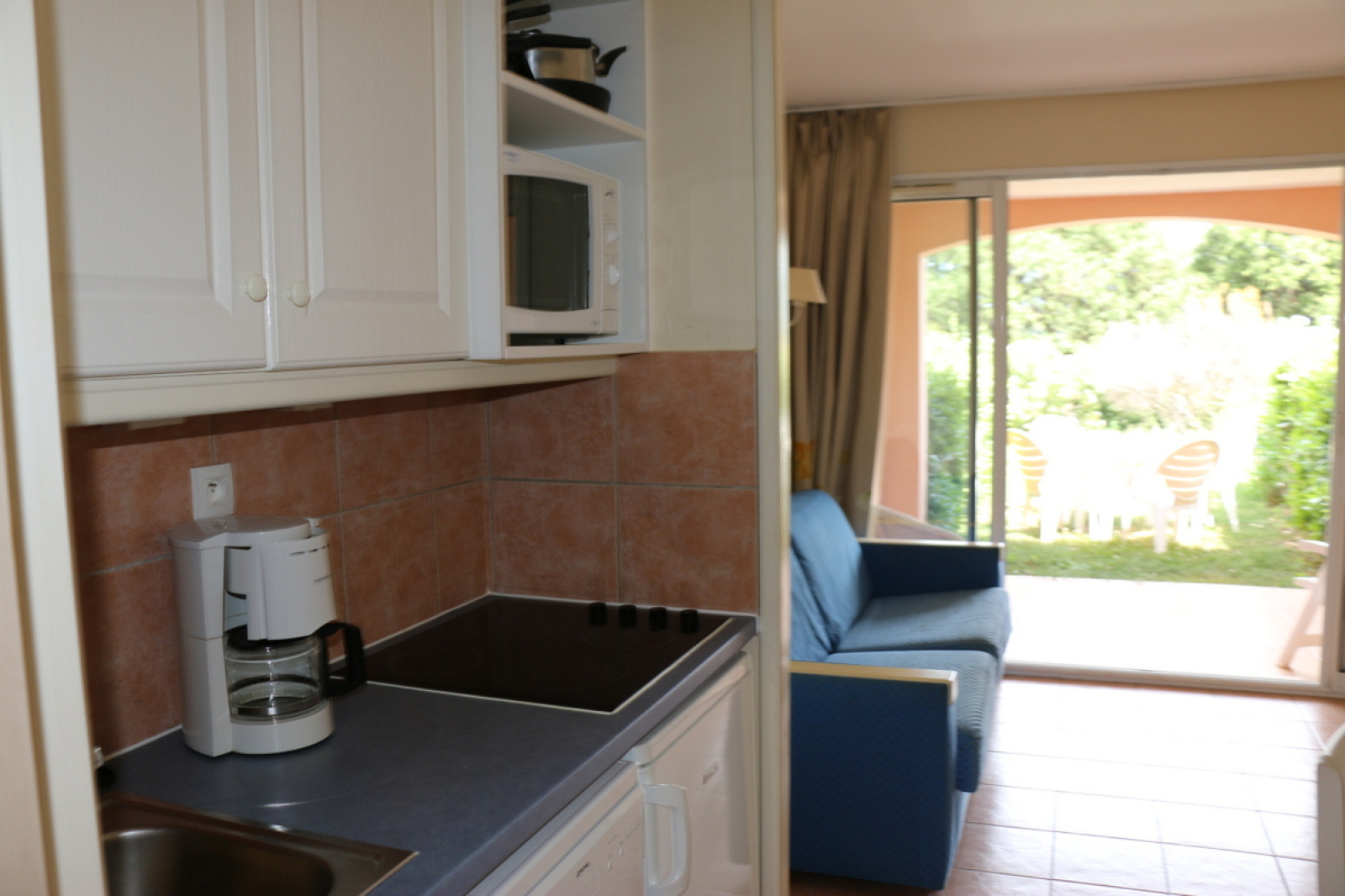 Situé aux Issambres dans une belle résidence avec piscine Appartement en rez-de-jardin type T2 comprenant: entrée avec placard, chambre, salle de bains, WC séparé. Séjour avec cuisine américaine équipée, accès direct sur loggia-terrasse et jardin. Idéal pour les vacances ou "pied-à-terre", cet appartement est aménagée et équipée pour 4 personnes. Parfait état. Parking sécurisé. Environnement calme et résidentiel.