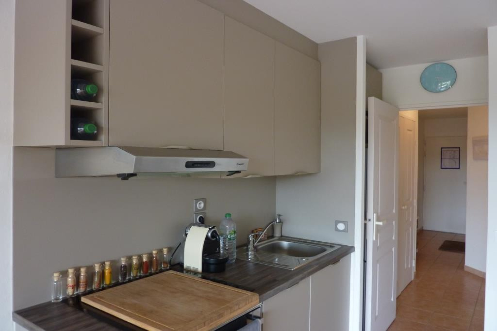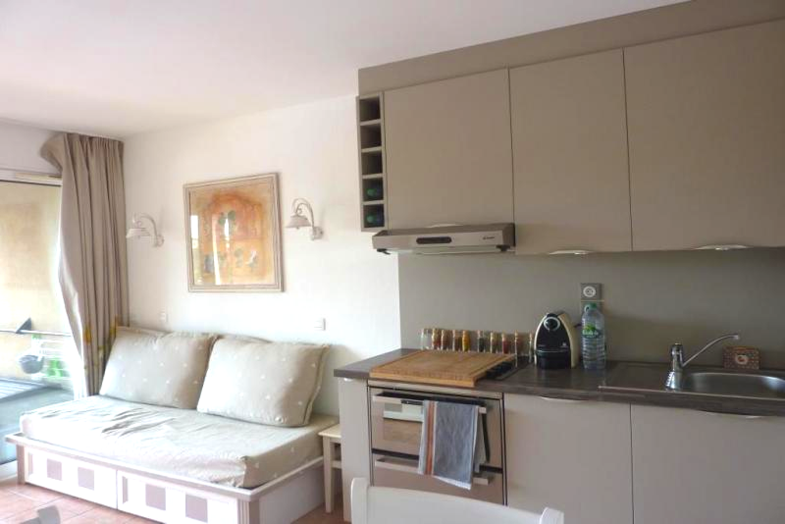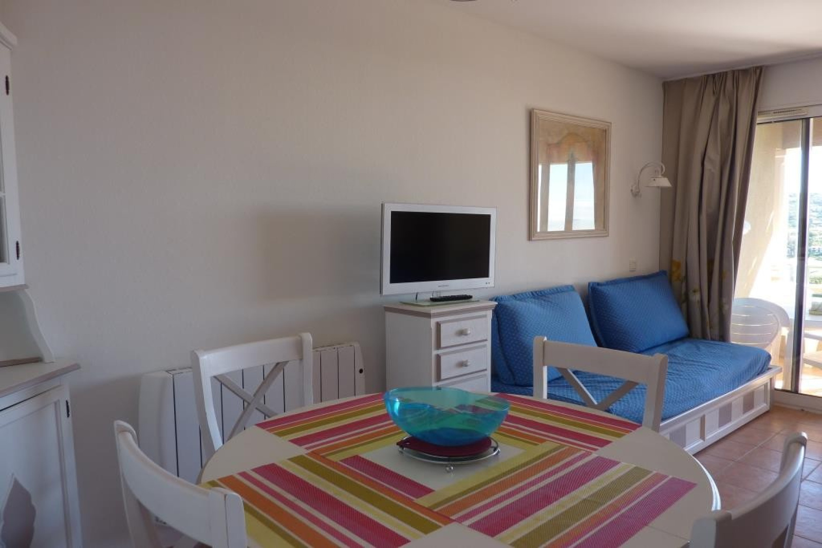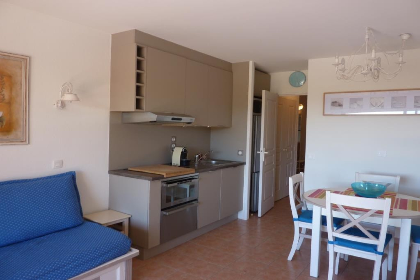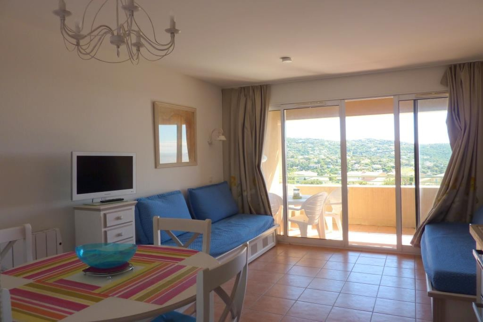 VUE MER. 2ème et dernier étage, Appartement T2 en parfait état offrant: séjour avec cuisine moderne aménagée et équipée, chambre avec placard, salle de douche refaite à neuf, WC séparé. Terrasse - loggia. Parfait état. Parking. Bel Résidence de 152 logements située sur les hauteurs des Issambres, piscine, parking.