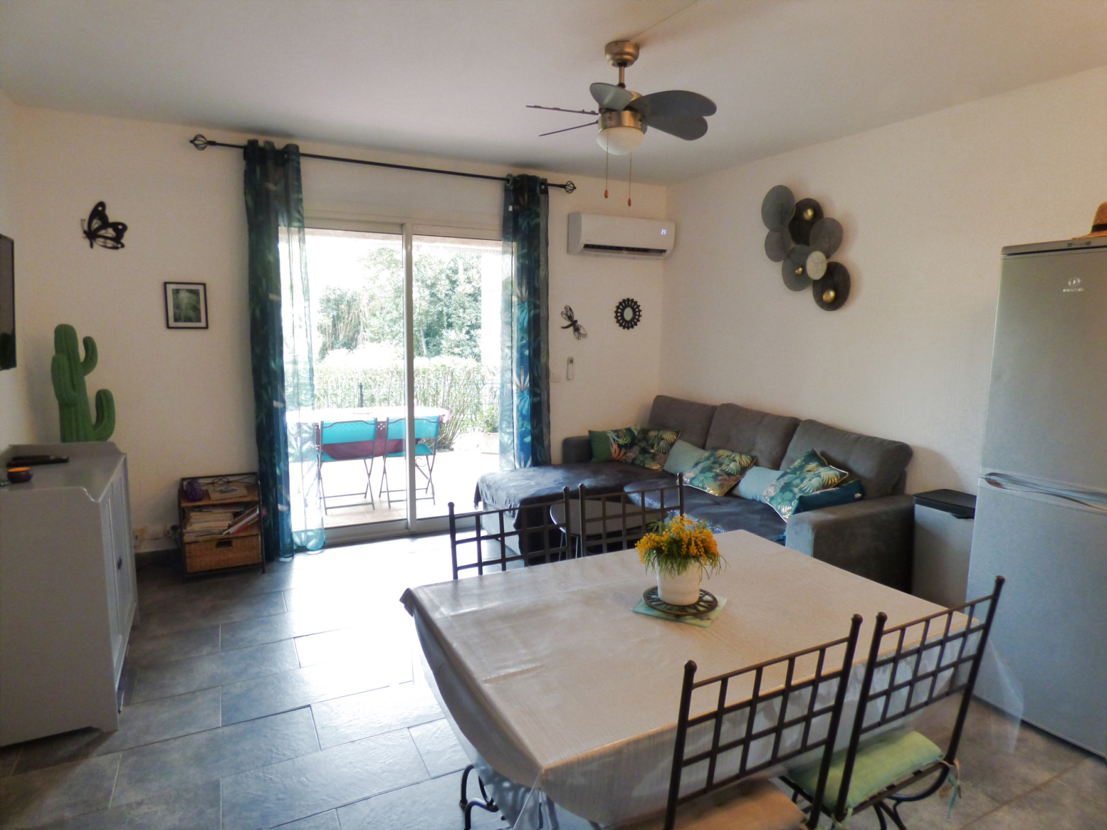 RARE. A 5 mn à pied de la mer et commerces, bel appartement en rez de jardin, offrant: une entrée, un séjour avec cuisine US équipée, une grande chambre avec dressing, une petite chambre 3 places, une salle de bains, wc indépendant. Terrassede 13 m². Place de parking .
