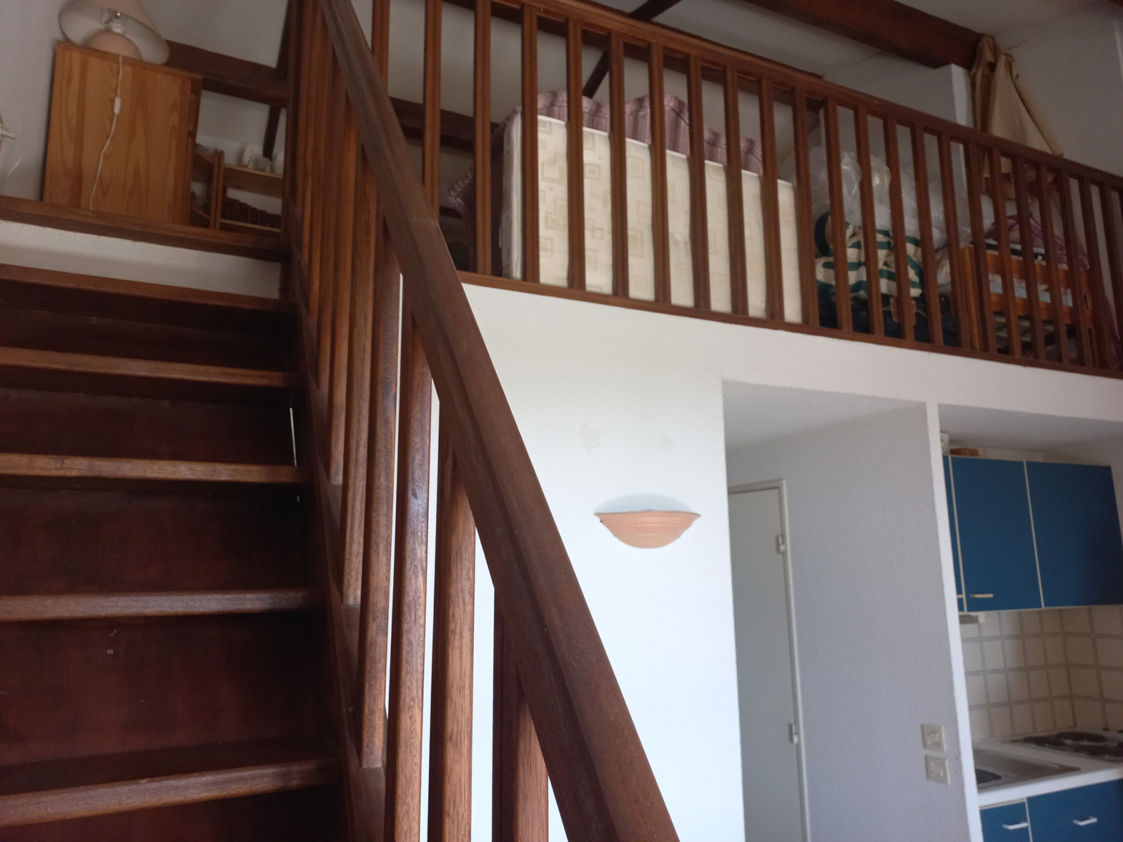 SOUS OFFRE D'ACHAT ACEPTEE. Dans domaine privé avec piscines et tennis, agréable duplex offrant de plain pied : une entrée, une petite chambre, un séjour avec kitchenette donnant sur terrasse VUE MER, une salle de bains, un wc séparé. A l'étage une grande chambre, mezzanine belle hauteur partout. Un jardin privatif de 40 m² .